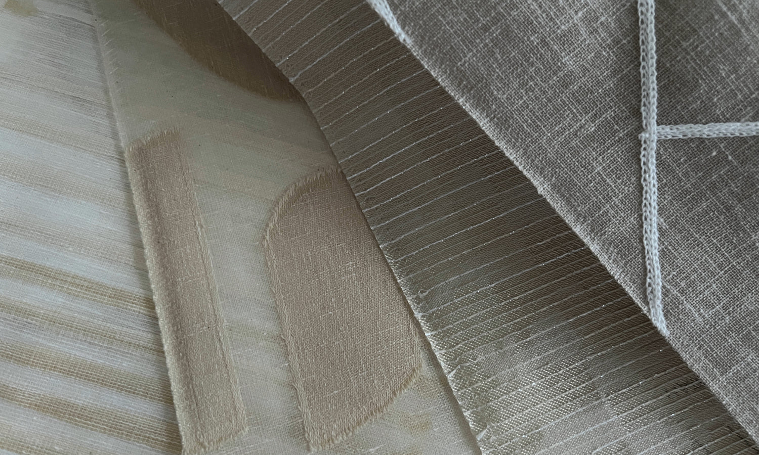 GavinGavin features a bold, applique-like pattern on a light base. Its subdued colours provide the perfect balance that allows for an appreciation of the design of this semi-sheer.-