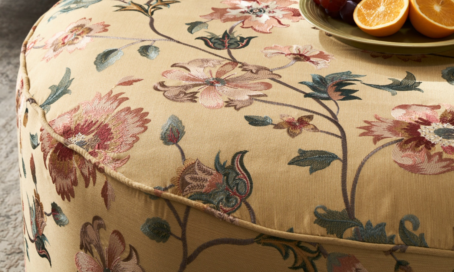 BastiaBastia rejoices in a medley of colours, the careful layers adding depth to the pattern. The metallic threads in the weave almost crown the floral motifs, giving the fabric a regal air.-