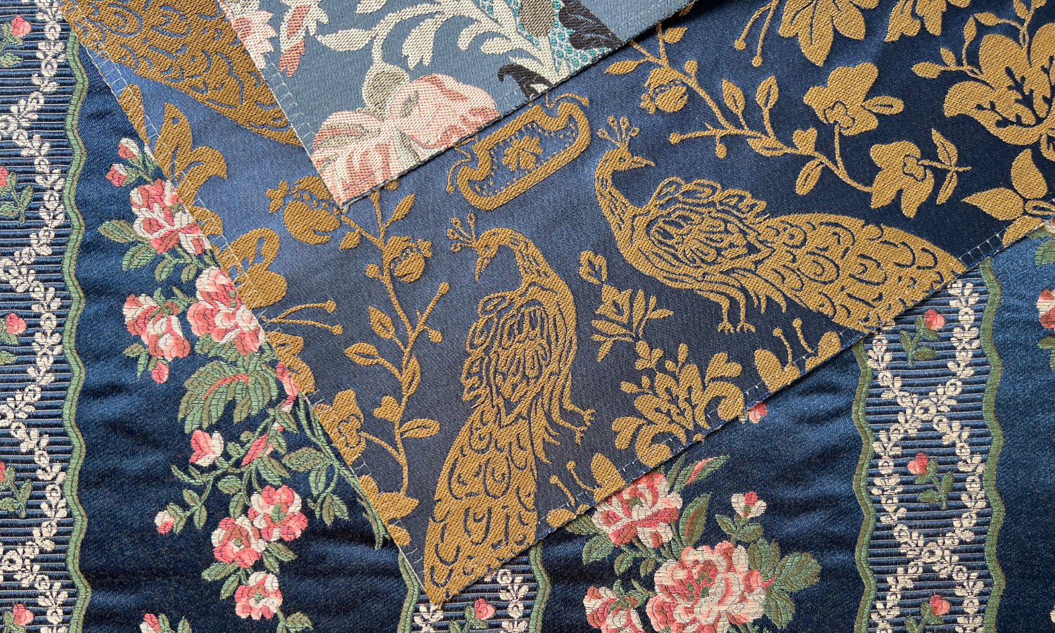 BordeauxMirrored peacocks flank crown motifs in Bordeaux, a regal textile. Its symmetry and style give it a stately feel that enhances the space around it.-