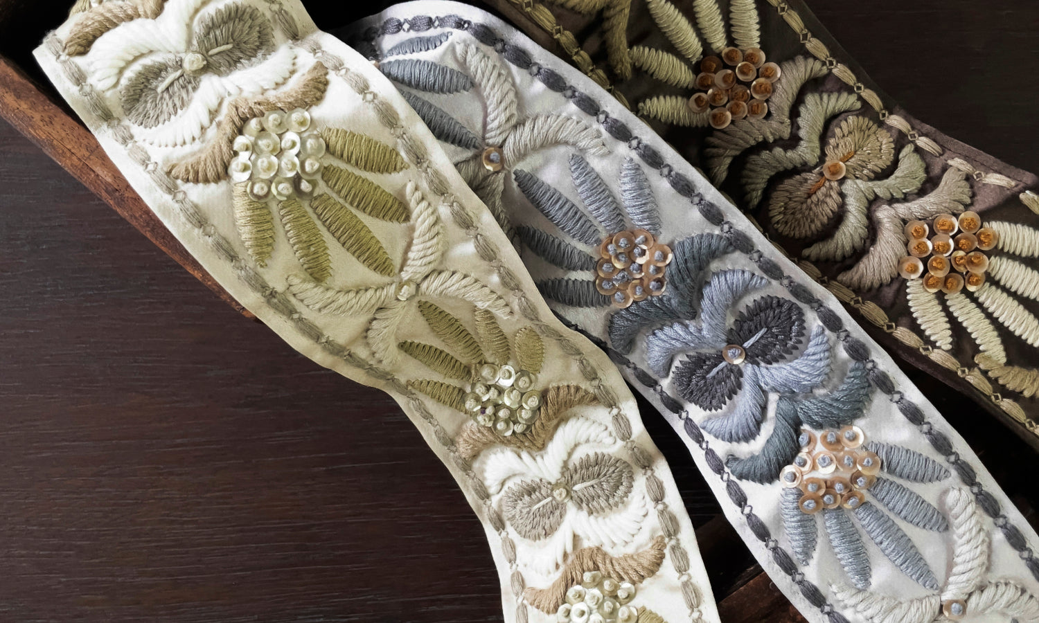 WaterfordLike a pool of flowers, Waterford's sequins and French knots stretch across a sea of tiny stitches. Earthy yet rich, Waterford is a tasteful and elegant border that gently stands out.-
