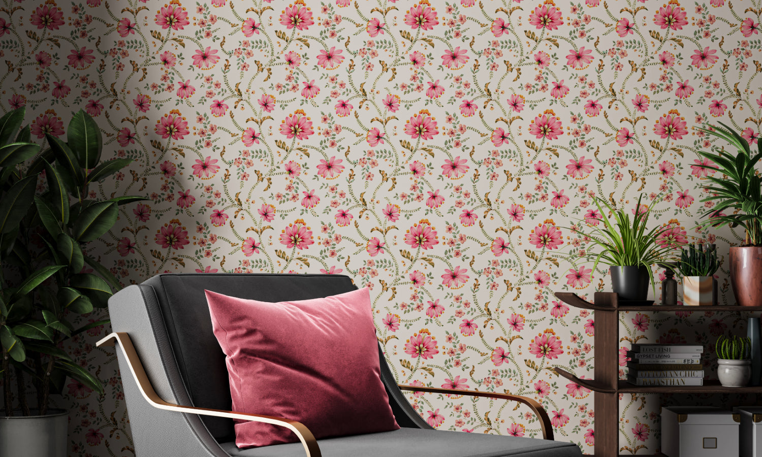 Alwar Jaal features a trailing delicate foliage with a mix of vibrant reds, oranges and soft whites against various backdrops.-