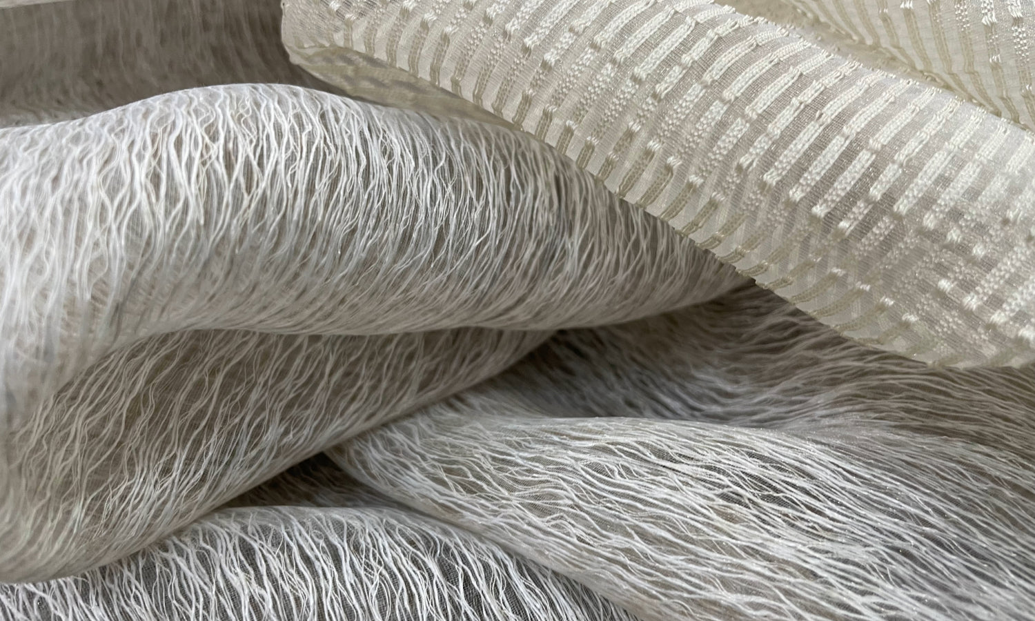 InfiniteInfinite’s fabric flows with a subtle, linear rhythm, each line stretching endlessly across the surface like trails in fine sand. Its delicate pattern introduces a sense of quiet continuity, bringing a calm, refined texture to the sheer.-