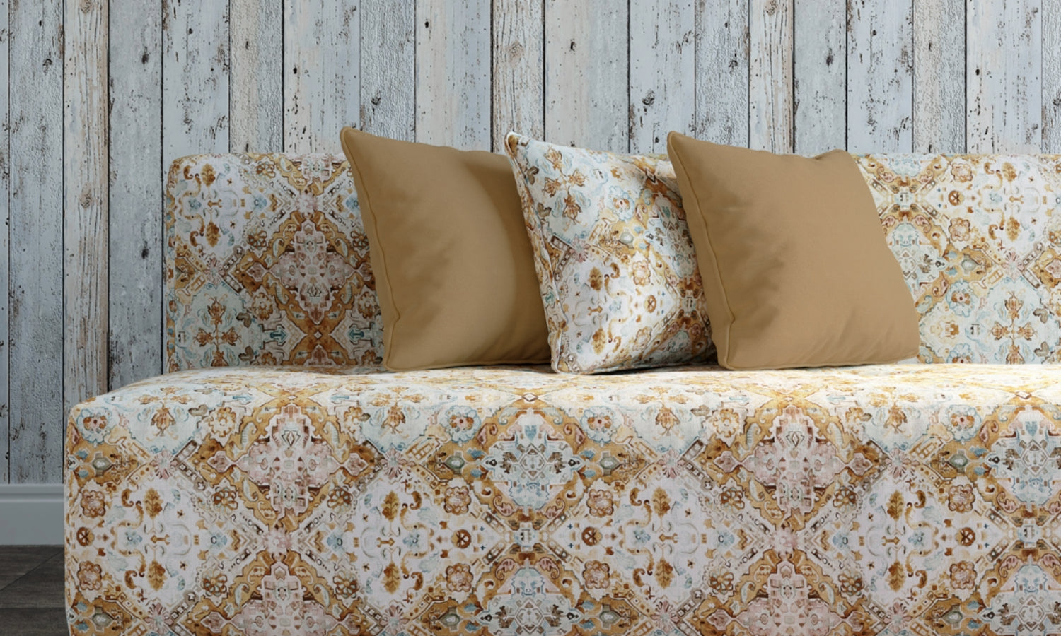 JubileeThis full watercolour style print is fun and lively. Available in Amber Tan and the more vivid Coral Sapphire, Jubilee is an alluring maze of colour with enticing surprises around every corner.-