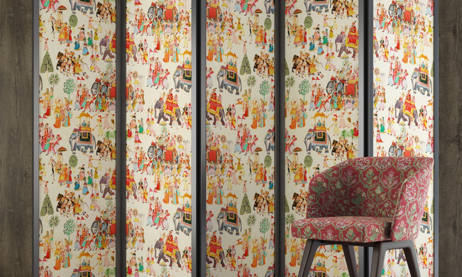 MauryaIndian miniature art is the champion of Maurya, a print that perfectly recreates the style and intricacies. A celebratory parade with music, dance, and victorious rulers on striding elephants - Maurya is a stately, striking fabric that makes an impression.-