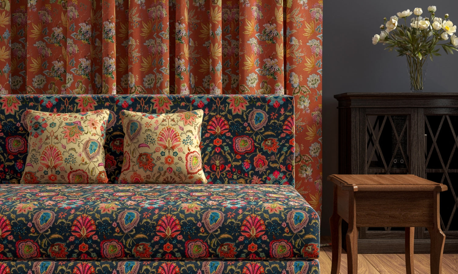 LeilaniA floral kaleidoscope, Leilani blends geometry and a riot of flowers to create a wondrously uplifting design. Colourful and bright, Leilani is a fabric that sets a cheerful tone.-